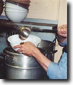 Penny found the red dogs in one of the local grocery stores - there are several different brands - and they got delivered to the kitchen at the appointed time. When I dropped them off, I was naive enough to ask if there was anything I could do to help out, and was immediately put to work. As a "trainee" I was allowed to bus tables and bring the dirty dishes to the kitchen. Over several suppers, I have been allowed additional tasks with more responsibility - I now can put down fresh paper on the tables from the roll of white butcher paper and can set the tables for the next sitting. I can break down tables and stack the chairs on the racks. The last time, I worked my way up and was allowed to carry around a water pitcher and refill people's glasses. Maybe I can get promoted to serving coffee next time - if I work hard and am careful. I will never get to work in the kitchen cooking or doing food prep, however, unless some people die or retire - there are too many in line in front of me. There are two pleasant side benefits of working the suppers - you get to socialize with just about everybody in town, and if there are any left overs the crew divides them up and takes them home. I still have some sausages in the freezer from the Maple Syrup Sunday Breakfast, and several containers of pea beans from one of the bean suppers this summer. When we had company over last weekend, it was easy to pull out a quart of home-made baked beans and warm them up to serve with supper. By the way, you will hardly ever find a baked bean "dinner". They are always "suppers". Fancy folks go out to "dinner", but the rest of us up here in Maine prefer the more informal and friendly "supper" where we can gather with friends and neighbors to socialize and sample some of the best regional cooking you'll find anywhere. The next time you see an ad in the paper or a road-side sign advertising a Baked Bean Supper - make a point to drop by and try it out. If you go away hungry, it is your own fault! Oh, and try and be early so you can get in on the first sitting.
