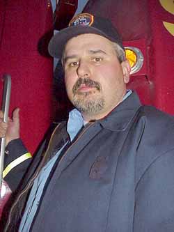 In 2000, John Duchesne joined the Sebago Fire Department as our second deaf firefighter. John was motivated to join when his wife Deronda was injured in a serious car accident. She survived only through the timely intervention of local fire and rescue personnel. Joining the department was his way of giving something back to his community. John (39) graduated from Baxter School for the Deaf in 1984. It was there that he met Deronda. They have lived in Sebago for more than 16 years and have a son and daughter, both of whom have normal hearing. John worked at the US Post Office for 12 ½ years and is now retired on a disability. He sells firewood and does landscaping. Both Jim and John wear alphanumeric pagers set on vibrate. When a fire call is toned out to the rest of the fire department, a text message is sent to their pagers to alert them to the call. They are able to learn where and what type of fire or emergency is involved. On scene both Jim's son Glenn, a Sebago Fire Captain, and Fire Chief Ken Littlefield are fluent in ASL and can issue commands to Jim and John as to what needs to be done. Several of the firefighters have also learned to communicate with them as well. Over the years Jim and John have been two of the town's most active and reliable volunteer firefighters. Last year, for example, there were only two other firefighters who responded to more calls than they did. Neither Jim nor John are rated for interior fire attack, a limitation that they have voluntarily set on themselves so that their handicap does not endanger themselves or their fellow firefighters. Instead, they provide a vital exterior support role at fires. Jim usually drives one of the fire engines or tankers. Over the years Jim has proven himself as a reliable driver of the big water tank trucks and is good at shuttling water to rural locations, so important in this area of few hydrants. John provides critical assistance at fires and car accidents, and helps with tools, replacing air bottles on the SCBA's, running hoses, etc.