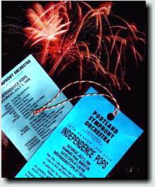 There was only one thing missing - the fish. Not only didn't we land any stripers, or have strikes, we didn't even see any of the bait fish activity that indicates stripers are schooling in the area. No one else fishing at any of the spots did anything either, but that didn't make us feel any better. This is the fourth time that Jack and I have gone out after stripers, to return fishless. He buoys me up with tales of his 40-fish days in these same areas, but I sense that even he is beginning to doubt his abilities. Doubt in an angler is a very bad thing indeed - doubting that the fish are there, or worse, doubting your ability to catch them. I once had a sermon preached directly to me in church when we lived in Canterbury, NH. (sure, the rest of the congregation happened to be there in church at the time, but I know that the minister was talking just to me!). Our friend and then neighbor, Reverend Carl preached a sermon on fishing. He pointed out "there is a big difference between going fishing and going to catch fish" Fishing is a state of mind, as is our view of life. The experience of going fishing, or our journey through life, can be an end in itself. The goal-oriented approach to life, of going to catch fish, has another set of values altogether. Our challenge as anglers is to be able to differentiate between the two, and not to get so hung up on the goals we set for ourselves that we miss the experience of the chase. Our series of unsuccessful trips for stripers this summer have been fun, and have introduced me to a new type of fishing and some wonderful parts of the coast I probably wouldn't ever have discovered if we weren't chasing fish. And besides, there is always next time - when the stripers will be schooling and every cast will produce a strike! Penny took advantage of the time while we were fishing to explore Bridgton's used book stores. When I got back home, we both hopped in the car and headed out for Windham where we had some shopping to do and some more book places to check out. Returning to the Farmhouse, I made a quick run to the dump and then a quick dip in the pool - and it was time for the annual Independence Day concert. For years, the Portland Symphony has had an outdoor concert followed by fireworks at the Shawnee Peak Ski area near Bridgton. Jack and Ellen brought Ozzie and Shirley, their house guests. Their across-the-street neighbors Bob and Pam came along as well. We all had a gourmet picnic on the grassy slopes of the ski area, complete with fried chicken, several varieties of potato salad and rice salad, four kinds of cheese (with crackers), sour pickles, sausage, and several different kinds of red and white wine. The wine glasses and the tablecloth were a nice touch - "it only takes a little more to go first class!" The weather couldn't have been better - cool, with a slight breeze, not muggy and no bugs. There were light, fluffy clouds overhead in a blue sky, and as the evening progressed the clouds moved in to provide a perfect backdrop for the fireworks. There was a good crowd, filling the grass sloping down to the band shell. When the concert started at 7:30 p.m. with the trooping of the colors and the Star Spangled Banner, everyone stood and broke out in singing. We then settled into our lawn chairs and recliners, wine glasses in hand, and thoroughly enjoyed the program of marches, show tunes and patriotic airs.