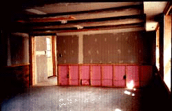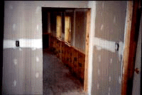 The attic runs the full length of the house, and is completely floored and has plenty of head room - just the place to accumulate lots of neat culch! My first plan was to haul everything down two flights of stairs and out the front door - and I backed the trailer up to the front steps. After one trip down and up the stairs, however, my lazy side (or common sense) took over. Plan "B" seemed much more logical, and so I moved the trailer so it was right under the north attic window. After I took out both windows and screens, I had a clear toss for the junk. "Is there anything in the attic you want me to save for you?" I'd asked Dot. "My old papers and records" she said "and the old radio too?" "Yes, that too, and the stacks of National Geographics as well." "OK, I'll haul all those things down to the front porch and cover them with plastic. You and Ed can come by and pick them up when you have a chance." I replied. Actually, the attic treasure trove was pretty disappointing. Other than the stuff I saved out for Dot, most of the rest went out the window into the trailer. There was a large number of Pella wooden Venetian blinds that I stacked neatly in one corner - in case we might find a use for them sometime. And some Victorian window rod finials for Paul that matched some at his house. But most of the rest was dump stuff - old linoleum and carpet, metal bed frames, unused rolls of wallpaper, broken toys, scraps of lumber and old mattresses. I never found the mason jars full of old coins rumored to be tucked away. Not much else either. There was a lot of bat droppings to be vacuumed up all over everything - but I really couldn't call it treasure. Droppings pretty much covered the attic floor, with concentrations under the favorite roosting spots in the rafters. By the way - just to keep everyone updated on the bat situation - nearly all of the attic colony of female and baby bats have now left to go into hibernation (the male colony in the carriage house left a couple of weeks ago), back to their winter home in caves about 45 miles west of us. We won't see them again till the end of May next year - lots of time to seal off the entry holes we missed this year! The chore really was a lot easier than I had dreaded - it was done in a day. Although dusty, the temperature was halfway decent with the windows open to make a draft - not the oven most attics are. Our "lady in the attic" was nowhere to be seen or heard, and she seems to be taking the cleanup and disruption well. We haven't had the attic lights come on by themselves, or any thumping on the stairs, for a couple of months now. (see "Fiddleheads and Ghosts" ) A run to the dump, a quick shower, and a dip in the pool finished the day - a great feeling of accomplishment, and the last big cleanup at the Farmhouse. Two other dirty chores remain, however - removing the "hanging" chimney in the front second-story bedroom, and cleaning out the old canning jars and preserves in the root cellar - but there's lots of time to tackle those. Drywall in the Carriage House